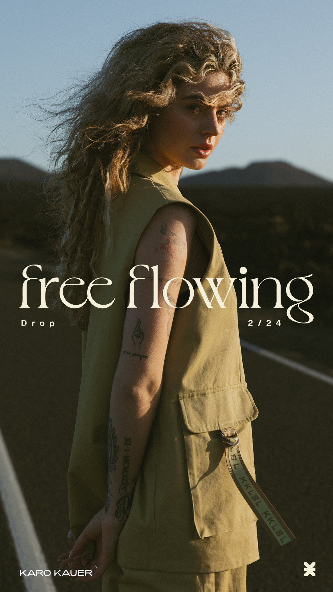 A woman with long dark hair, dressed in a white shirt, is lifting a translucent fabric against a light sky background.